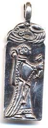 Var med mina hundar hos veterinären som givetvis är intresserad av historia och arkeologi (man väljer ju sina veterinärer med omsorg). Han bodde tidigare i Hököpinge söder om Malmö, en av Skånes stora vikingahandelsplatser. Hans bror fann på en åker i Hököpinge denna keramikskulptur, ca 15 cm hög. Den har ett runt hål i botten och hålet går djupt in. Figuren är alltså formad runt en rund träpinne. Blev något rådvill när jag fick frågan vad det var för något. Hårkluten ser ju inte nordiskt ut men figuren är bevisligen ett jordfynd från en åker i Hököpinge. Samtidigt som nederdelen är nästan blanksliten är resten av figuren betydligt mer medtagen i ytan.