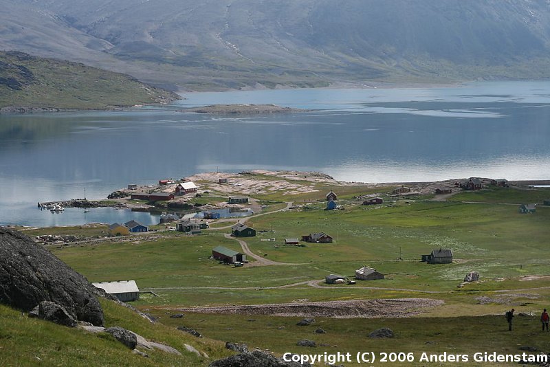 Klimatet på Grönland har ju som sagt varierat med tiden. Idag verkar det iaf kunna se ganska grönt ut utefter fjordarna i Östbygden på sommaren. Jag har iofs bara varit utefter Eiriksfjorden och ner till Herjolfsnes. Nedan en bild från Garðar juli 2006.